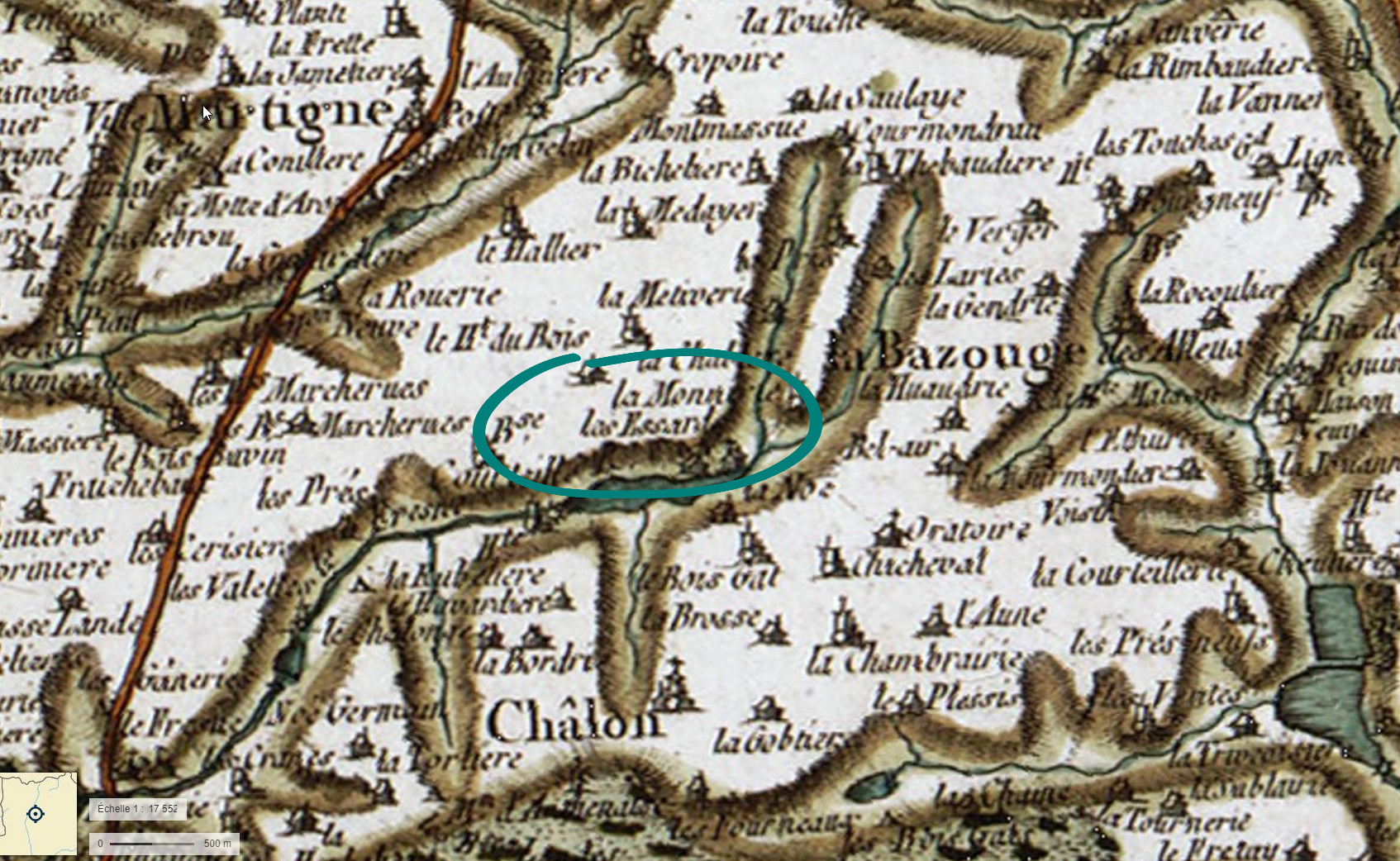 A quelques lieues de Châlons-du-Maine, et de Martigné-sur-Mayenne, il y avait « un féage de Challon », vendu par le seigneur de Mondot (1387) à Patry Lebreton et que ce dernier céda, en 1449, à Simon Berault, sieur des Essarts. Ce féage, dit depuis « fief, justice et seigneurie d'Essart, alias Chalon, » était sans domaine ni château, ayant seulement « la coustume des marchandises, sçavoir est un denier pour beste et deux deniers pour chacun porc qui couche en la seigneurie la veille de la Saint-Jehan, et deux deniers pour pipe de vin vendue ». Catherine Berault, veuve de Gervais Gaultier, possède ce fief en 1600, 1605 ; Louis Cazet, sieur de Vautorte, en 1631. Le seigneur de Gresse en fit l'acquisition, de 1650 à 1680, et le relevait aussi de Montsûrs